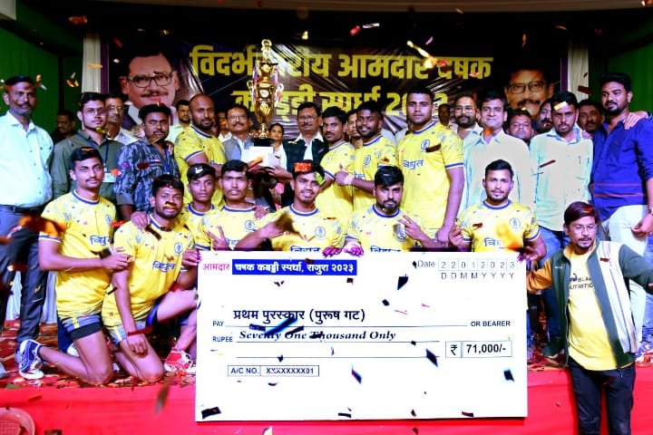 पुरूष गटातून विद्युत मोहाडी तर महिला गटातून रविंद्र उमरेड संघ प्रथम पुरस्काराचे मानकरी ठरले. विद्युत मोहाडी संघाला प्रथम पुरस्कार ७१ हजार रुपये रोख व चषक, स्वर्गीय रामचंद्रराव धोटे माजी आमदार यांच्या स्मृती प्रित्यर्थ आमदार सुभाष धोटे यांच्यातर्फे तर द्वितीय पुरस्कार एकलव्य नागपूर च्या संघाला ५१ हजार रुपये रोख व चषक, स्वर्गीय सुधाकरराव देशपांडे यांच्या स्मृती प्रित्यर्थ सुनील देशपांडे यांच्यातर्फे देऊन गौरविण्यात आले. महिला गटात रविंद्र क्रीडा मंडळ, उमरेड संघाला प्रथम पुरस्कार ५१ हजार रुपये रोख व चषक, स्वर्गीय प्रभाकरराव मामुलकर माजी आमदार यांच्या स्मृती प्रित्यर्थ श्रीमती सुमनताई मामुलकर यांच्यातर्फे तर द्वितीय पुरस्कार साई क्रीडा मंडळ काटोल च्या संघाला ३१ हजार रुपये रोख व चषक, श्रीमती मालतीबाई धोटे यांच्या स्मृती प्रित्यर्थ माजी नगराध्यक्ष अरुण धोटे यांच्यातर्फे देऊन गौरविण्यात आले. तसेच पुरूष गटातून प्लेअर ऑफ द टूर्नामेंट ११ हजार रुपये – विद्युत मोहाडी संघाचे आकाश पिकलमुंडे, प्लेअर आफ द मॅच, ७ हजार रुपये – एकलव्य नागपूर संघाचे वंश मुदलीवार, उत्कृष्ट पकड ७ हजार रुपये- विद्युत मोहाडी चे अनिकेत गभणे, उत्कृष्ट चढाई ७ हजार रुपये – एकलव्य चे सारंग देशमुख, तर महिला गटातून प्लेअर ऑफ द टूर्नामेंट ११ हजार रुपये – रविंद्र उमरेड ची प्राची बघेल, प्लेअर आफ द मॅच, ७ हजार रुपये – साई काटोल ची तनु ठाकरे, उत्कृष्ट पकड ७ हजार रुपये- साई काटोल ची मुस्कान लोखंडे, उत्कृष्ट चढाई ७ हजार रुपये – रविंद्र उमरेड ची हर्षा खडसे यांना देण्यात आले. तर अनेक सामान्यात विविध वैयक्तीक पुरस्कार देण्यात आले.