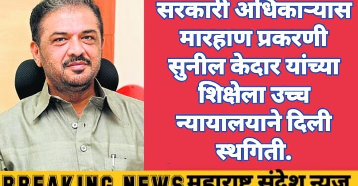 महाराष्ट्र संदेश न्युज ! ऑनलाईन नागपूर:- सरकारी अधिकाऱ्यास मारहाणीच्या प्रकरणामध्ये माजी मंत्री तथा काँग्रेसचे विद्यमान आमदार सुनील केदार यांना एक वर्ष कारावासाची शिक्षा सुनावण्यात आली होती. जिल्हा सत्र न्यायालयाने सुनील केदार यांनी ही शिक्षा सुनावली होती. सरकारी अधिकाऱ्यास मारहाणीच्या प्रकरणामध्ये राज्याचे माजी मंत्री सुनील केदार सह इतर तीन आरोपींना सुनावण्यात आलेल्या शिक्षेला मुंबई उच्च न्यायालयाच्या नागपूर खंडपीठाने बुधवारी अंतरिम स्थगिती दिली. तसेच, सर्व आरोपींना जामीन मंजूर केला व त्यांच्या शिक्षेविरुद्धचे अपील अंतिम सुनावणीसाठी दाखल करून घेतले. प्रकरणावर न्यायमूर्ती अनिल पानसरे यांच्यासमक्ष सुनावणी झाली.