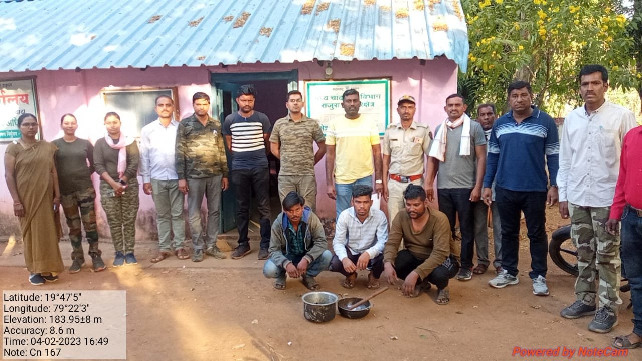 ही कारवाई उपवनसंरक्षक श्वेता बोड्डू, सहायक वनसंरक्षक, श्रीकांत पवार यांचे मार्गदर्शनात, परिवेक्षाधीन सहाय्यक वनसंरक्षक शेख तौफिक शेख, वनपरिक्षेत्र अधिकारी राजुरा सुरेश येलकेवाड यांचे नेतृत्वात, क्षेत्रसहायक संतोष संगमवार, प्रकाश मत्ते, नरेंद्र देशकर, वनरक्षक अर्जुन पोले, वर्षा वाघ, सायस हाके, एस. डी. सुरवसे, सुनील गजलवार, मीरा राठोड, डी.एम. चंदेल, सुनील मेश्राम यांनी केली.तसेच वनमजूर यांचे महत्वपूर्ण सहकार्य लाभले. पुढील तपास वनविभाग राजुरा कडून सुरू आहे. राजुरा वनविभागाच्या या धडक कार्यवाहीमुळे शिकार करणाऱ्यांमध्ये भीतीचे वातावरण पसरले आहे.