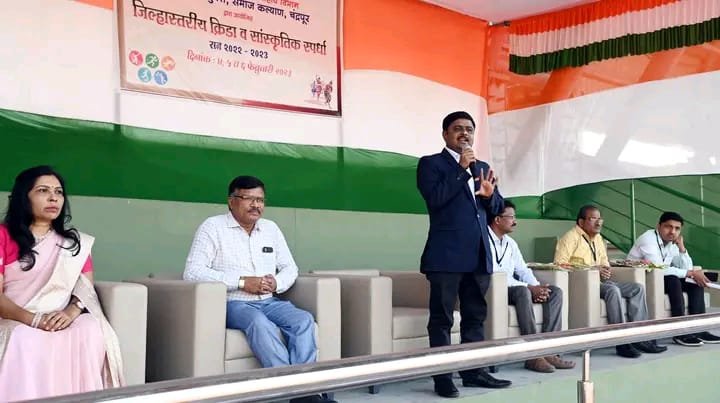 महाराष्ट्र संदेश न्युज ! ऑनलाईन चंद्रपूर:- शालेय विद्यार्थ्यांच्या अंगी विविध कलांगुण असतात. त्या कलागुणांना वाव मिळावा व त्यांच्यामध्ये शिक्षणासोबतच, नेतृत्व गुण व सांघिक भावना वृद्धिगंत होण्यासाठी खेळ उपयुक्त आहे, असे प्रतिपादन समाजकल्याण विभागाचे सहाय्यक आयुक्त अमोल यावलीकर यांनी केले. सैनिक स्कूल, चंद्रपूर येथे सहाय्यक आयुक्त, समाजकल्याण द्वारा आयोजित जिल्हास्तरीय क्रीडा व सांस्कृतिक स्पर्धेच्या कार्यक्रमाप्रसंगी ते बोलत होते.