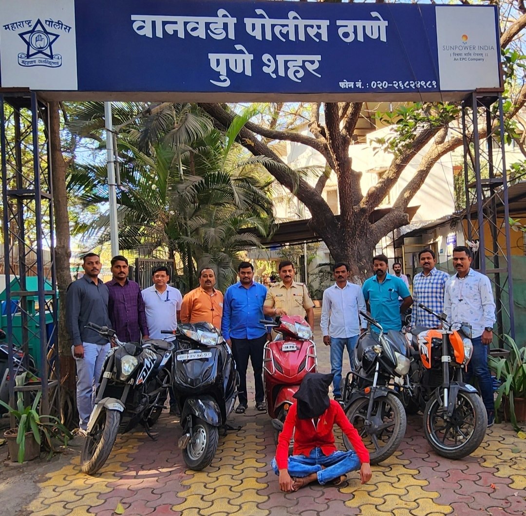 महाराष्ट्र संदेश न्यूज ऑनलाईन पुणे :- वानवडी पोलीस ठाणेचे वरिष्ठ पोलीस निरिक्षक श्री भाऊसाहेब पटारे यांचे सुचनांप्रमाणे वानवडी तपास पथक प्रभारी पोलीस उपनिरिक्षक अजय भोसले व पो. अम. विनोद भंडलकर, संतोष नाईक, महेश गाढवे, अमोल गायकवाड, विष्णु सुतार व विठ्ठल चोरमले असे पोलीस ठाणे हद्दीत वारंवार घडत असलेल्या वाहन चोरीच्या गुन्हयांना प्रतिबंध करणेकामी सतर्कतेने पेट्रोलिंग करीत असताना पो. अंम. अमोल गायकवाड व विष्णु सुतार त्यांना त्यांचे खास बातमीदारामार्फत माहिती मिळाली की, रामटेकडी वानवडी परिसरात घरफोडी व वाहनचोरी करणारी मुले ही रामटेकडी डोगंरांवरील पाण्याचे टाकीजवळ थांबलेले असुन ते दोन गटांत तेथे थांबलेले आहेत. तसेच त्यांचेकडे चोरीची दुचाकी असलेलेबाबत मिळालेले बातमीवरून वानवडी पोलीस स्टेशनकडील वरील अधिकारी व अंमलदार यांनी सदर भागांत सापळा रचून प्रथम खालील आरोपीतास ताब्यात घेवुन त्यास अटक करण्यात आलेले आहे,
