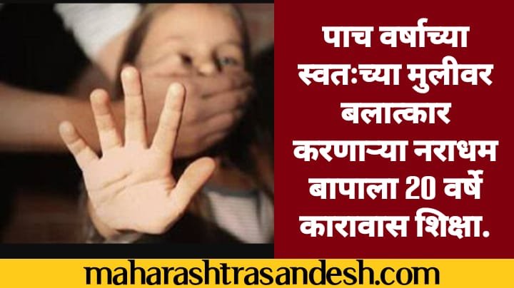 पाच वर्षाच्या स्वतःच्या मुलीवर बलात्कार करणाऱ्या नराधम बापाला 20 वर्षे कारावास शिक्षा.