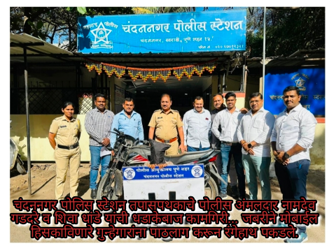 सदरची कामगिरी ही मा. रंजनकुमार शर्मा अपर पोलीस आयुक्त सो पूर्व प्रादेशिक विभाग पुणे शहर, मा. शशीकांत बोराटे, पोलीस उपआयुक्त सो परीमंडळ-४ पुणे शहर, मा. किशोरजाधव, सहा. पोलीस आयुक्त सो, येरवडा विभाग, पुणे शहर मा. राजेंद्र लांडगे, वरीष्ठ पोलीस निरीक्षक सो चंदननगर पो.स्टे. पुणे शहर, मा. जगन्नाथ जानकर, पोलीस निरीक्षक (गुन्हे) सो. चंदननगर पो.स्टे. पुणे यांचे मार्गदर्शनाखाली पोउपनिरी गोरक्ष घोडके, पो. अंमलदार अविनाश संकपाळ, महेश नाणेकर, शिवा धांडे, श्रीकांत शेंडे, नामदेव गडदरे, सुरज जाधव, श्रीकांत कोद्रे, विकास कदम, शेखर शिंदे, सुभाष आव्हाड, गणेश हांडगर यांनी केली आहे….