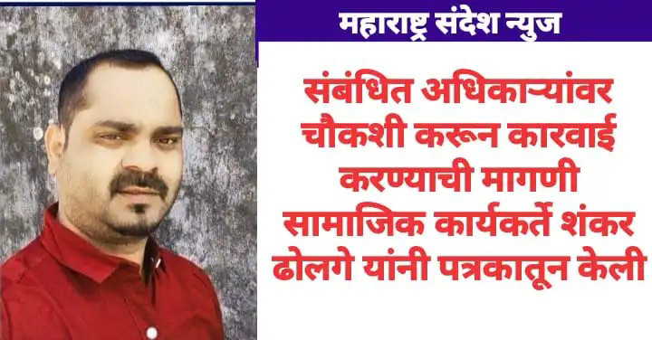 संबंधित अधिकाऱ्यांवर चौकशी करून कारवाई करण्याची मागणी सामाजिक कार्यकर्ते शंकर ढोलगे यांनी पत्रकातून केली
