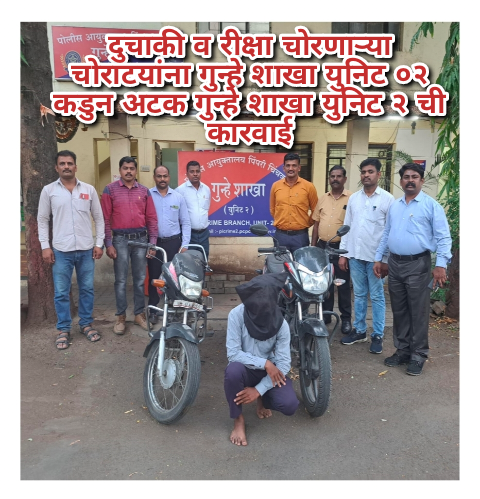 गुन्हे शाखा युनिट २ चे पोलीस सदर शाईन गाड़ी चोराचा शोध घेत असताना पो हवा जयवंत राऊत व प्रमोद वेताळ यांना शाईन गाड़ी हि दिनेश इंगळे याने चोरल्याचे रोडचे सी.सी.टी.व्हि. कॅमेरे पाहून समजले त्यांनी शाईन गाडी चोराचा माग काढताना आज दि. २४/०४/२०२३ रोजी इसम नाम दिनेश मलकारी इंगळे वय २८ वर्षे चंदा खाजगी नोकरी रा. सी / ओ ओम गुप्ता यांची रूम दुसरा मजला औदुंबर कॉलनी, नक्षत्रम हॉटेल जवळ, वाल्हेकरवाडी, चिंचवड यास त्याचे राहते घराचे पाकग मधुन पोलीस उप-निरीक्षक गणेश माने, पोहवा प्रमोद वेताळ, संतोष इंगळे, जयवंत राऊत, पोना देवा राऊत, सागर अवसरे यांच्या पथकाने सापळा रचुन त्यास ताब्यात घेवून चौकशी केली असता तो उडवा उडवीची उत्तरे देवु लागल्याने त्यास पोलीसी खाक्या दाखविताच त्याने तो राहत असलेल्या घराच्या पाकींगमध्ये चोरलेली शाईन मो.सा. नंबर MH 14 17. 7217 व दि. ०४/०४/२०२३ रोजी मध्यरात्री लिंकरोड चिंचवड येथिल रेल्वे ट्रॅक जवळील श्री सुमन श्री अपार्मेन्ट येथिल पाकींग मधुन हिरो होंडा कंपनीची काळया रंगाची मोटार सायकल तिचा नंबर MH 41 K 6204 हि सुध्दा चोरल्याची कबुली देवुन दोन्ही गाड्या पाकींगमध्ये पार्क केल्याची ठीकाण दाखविली. सदर आरोपी एकडुन ६०,०००/- रुपये कमितिच्या ०२ मोटार सायकल जप्त करून ०२ गुन्हे उघड करण्यात आले.तसेच एका विधी संघर्षित बालकास सपोफी शिवानंद स्वामी, केराप्पा माने यांना १९२३ आतिष कुडके, नामदेव कापसे, पोलीस अंमलदार शिवाजी मुंडे, अजित सानप, उध्दव खेडकर यांनी त्यास ताब्यात घेवून त्यास विश्वासात घेवून त्याचेकडे अधिक चौकशी केली असता त्याने चार दिवसापूर्वी मल्हार गार्डन जवळून नवी सांगवी येथुन एक बजाज ऑटो कंपनीची रीक्षा तिचा नंबर AMIT 12 TU 3041 हि चोरल्याची सांगितले. तसेच एक हीरो होंडा कंपनीची पेंशन मोटार सायकल तिचा नंबर MIT 14 BB 2133 हि टाटा मोटर्स कंपनी पिंपरी येथिल पार्कींग मधून चोरल्याचे कबुली दिल्या अनने त्याच्या कब्जातून ०१ रीक्षा व ०१ मोसा असा एकूण १,६५,०००/- रुपये कीमतिचा मुद्देमाल जप्त करण्यात आला असून गुन्हे शाखा युनिट ०२ कडुन दोन वेगवेगळया कारवया मधुन ०३ दुचाकी व ०१ रीक्षा अशी ०४ बहाने २,२५,०००/- रुपये कॉमतिचा मुद्देमाल जप्त करुन एकुण वहानचोरीचे ०४ गुन्हे उघड करण्यात आले आहेत.