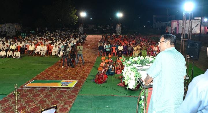 २०१४ ते २०१९ या काळात महाराष्‍ट्रात युती सरकार होते. त्‍या काळात संपूर्ण महाराष्‍ट्रात व चंद्रपूर जिल्‍हयातही अनेक विकासाची कामे झाली, परंतु २०१९ ते २०२२ या अडीच वर्षात महाराष्‍ट्रात असलेल्‍या सरकारने विकासाची सर्व कामे ठप्‍प केली. त्‍यामुळे मुर्ती विमानतळ, राष्‍ट्रीय महामार्ग या व इतर अनेक कामांमध्‍ये खोळंबा निर्माण झाला. आता आमचे सरकार अतिशय वेगाने काम करून सर्व प्रकल्‍प अतिशय जलदगतीने पूर्ण करण्‍याचा संकल्‍प आम्‍ही केला आहे. रामपूर ही ग्राम पंचायत गेल्‍या काही वर्षात झपाटयाने वाढली आहे. त्‍यामुळे या गावाचा समावेश राजुरा नगर परिषद हद्दीत करावा अशी मागणी आली आहे. याचा अभ्‍यास करून निर्णय घेण्‍यात येईल.