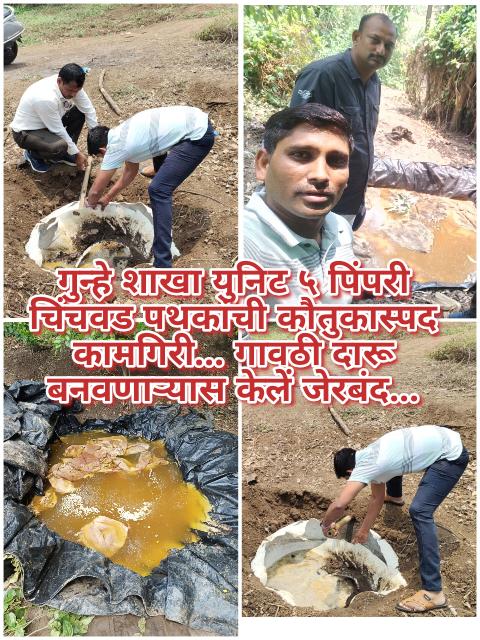 गुन्हे शाखा युनिट ५ पिंपरी चिंचवड पथकांची कौतुकास्पद कामगिरी… गावठी दारू बनवणाऱ्यास केलें जेरबंद…