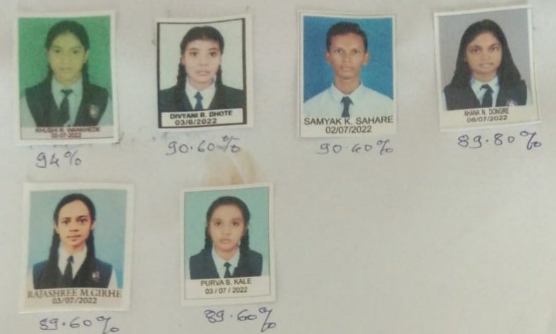 त्यामध्ये प्रथम क्रमांक कु. खुशी वानखेडे 94%, द्वितीय क्रमांक कु.दिव्यांनी धोटे व सम्यक सहारे- 91%, तृतीय क्रमांक आहाना डोंगरे, राजश्री गिऱ्हे व पूर्वा काळे 90% याप्रमाणे या विद्यार्थ्यांनी बाजी मारली. तसेच उर्वरित विद्यार्थी सुद्धा विशेष प्राविण्य श्रेणीत पास करून शहराचे व शाळेचे नाव लोकिक केले.