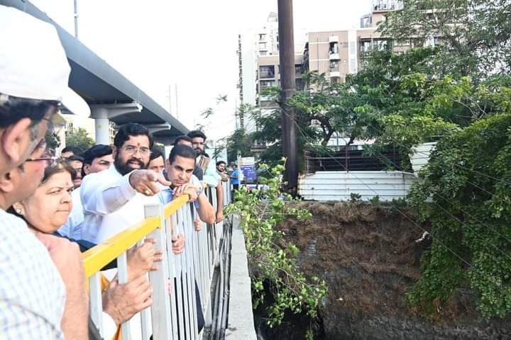 नागरिकांना त्रास होणार नाही याची दक्षता घ्या मुख्यमंत्री शिंदे यांनी दरवर्षी पाणी साचत असलेल्या पोईसर नदीची पाहणी केली. दरवर्षी या नदीपात्रात पाणी साचल्याने आजूबाजूचा परिसर जलमय होतो. काठावरील नागरिकांना त्याचा मोठा त्रास होतो त्यामुळे या नदीपात्रातील गाळ देखील उपसून पाणी साचणार नाही याची दक्षता घ्यावी अशा सूचना मुख्यमंत्री एकनाथ शिंदे यांनी दिल्या.