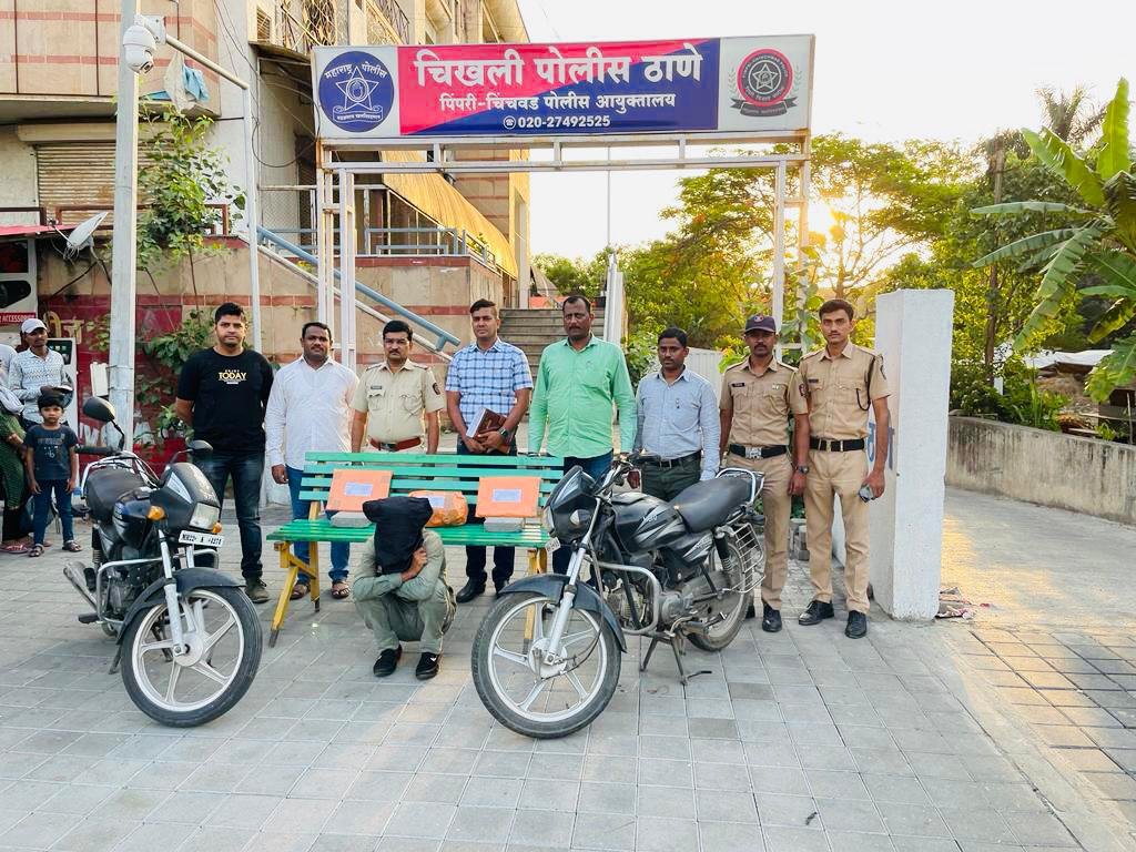महाराष्ट्र संदेश न्यूज ! ऑनलाईन पुणे :- मागील तीन ते चार महिन्यांपासून चिखली पोलीस ठाणे व पिंपरी-चिंचवड परिसरामधुन मोठया प्रमाणात वाहन चोरीला जात आहेत. त्यामुळे अश्या मोटार सायकल चोरीला प्रतिबंध व्हावा यासाठी उपाय म्हणुन मा. वरिष्ठांच्या निर्देशनानुसार चिखली पोलीस ठाणेचे वरिष्ठ पोलीस निरीक्षक श्री.ज्ञानेश्वर काटकर, यांनी वाहन चोरी विरोधी पथक तयार करून त्याअनुषंगाने पोलीस ठाणेच्या हद्दीमध्ये नियमीत पेट्रोलींग करण्यास व बातमीदार नेमून वाहन चोरीचे गुन्हे उघडकीस येण्यासाठी प्रयत्न करण्यास सुरुवात केली.त्यानुसार आज दि. २०/०५/२०२३ रोजी वाहन चोरी विरोधी पथकाचे प्रभारी अधिकारी श्री. राकेश गुमाने, सहा. पोलीस निरीक्षक तसेच पोलीस अमलदार पोहवा. १९३३ / साकोरे, पोना. १५४६ / गायकवाड, पोना. १८५६/पिंजारी, असे मोटर सायकल चोरीस प्रतिबंध होण्याच्या अनुषंगाने चिखली पोलीस ठाणेच्या हददीमध्ये पेट्रोलींग फिरत असतांना असतांना त्यांना नेवाळेवस्ती व हरगुडेवस्ती दरम्यान एक संशयीत इसम मोटार सायकलवरुन येत असल्याचे दिसून आले. त्यास त्यांनी थांबवुन त्याचेकडील मोटार सायकल बाबत खात्री करता त्याचेकडे मोटार चालविण्याचा परवाना द मोटार सायकल मालकी संदर्भात कोणतेही कागदपत्र उपलब्ध नव्हती, तसेच त्याचेकडे वाहनाबाबत खात्री करता उडवाउडवीची उत्तरे दिली.