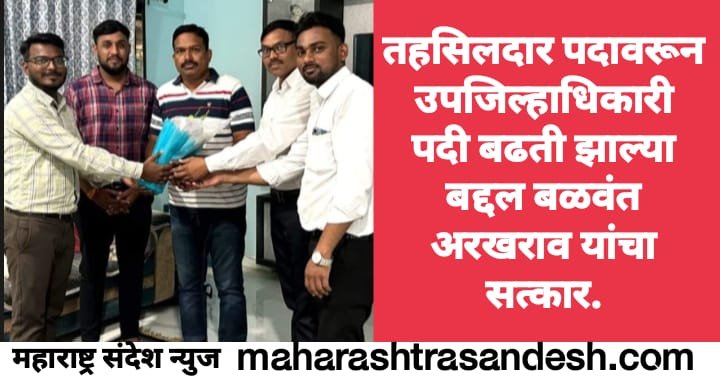 तहसिलदार पदावरून उपजिल्हाधिकारी पदी बढती झाल्या बद्दल  बळवंत अरखराव यांचा सत्कार