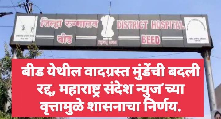 बीड येथील वादग्रस्त मुंडेंची बदली रद्द, महाराष्ट्र संदेश न्युज’च्या वृत्तामुळे शासनाचा निर्णय.