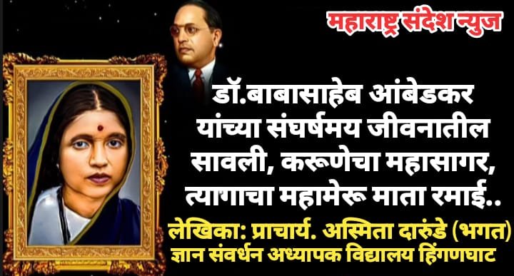 महाराष्ट्र संदेश न्युज ! ऑनलाईन दिनविशेष रमाई भिमराव आंबेडकर स्मृतीदिन:- रमाई भीमराव आंबेडकर यांच्या पत्नी होत्या. रमाईच्या संघर्षातूनच डॉ. बाबासाहेब आंबेडकर उच्च विद्याविभूषित होऊ शकले. आयुष्याच्या कोवळ्या वयातच त्यांना अनेक प्रसंगाला पुढे जावे लागले. लहानवयातच भावा बहिणीची जबाबदारी त्यांच्यावर होती. लग्न झाल्यावर बाबासाहेबांचे शिक्षण पूर्ण करण्यासाठी संसाराचा संपूर्ण गाढा रमाबाईंनी जिद्दीने व दुःखातून, अडी- अडचणीतून मार्ग काढीत यशस्वीपणे चालविला. रमाबाई आंबेडकर यांनी आपल्या जीवनात हाल-अपेष्टा, दुःख, दारिद्र्य पाहिले. लहानपणीच आई – वडिलांचे छत्र हरवलेली रमाई. लग्न झाल्यावर वडीलांसमान सासरे सुभेदार रामजी यांचा देखील मृत्यू झाला. कमी आयुष्यात खूप यातना त्यांनी सहन केल्या. रमाबाई यांच्या जीवनात सर्वात मोठे दुःखद घटना घडली ती म्हणजे डॉ.बाबासाहेब आंबेडकर यांचा मुलगा बाळ गंगाधर व राजरत्न यांचा मृत्यू झाला. एवढे सर्व घडत असताना देखील याबद्दल बाबासाहेबांना काहीच कधीच सांगितले नाही, याची चाहूल देखील कधीच डॉ. बाबासाहेब आंबेडकरांना होऊ दिली नाही.