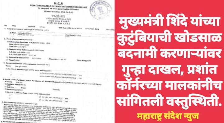 मुख्यमंत्री शिंदे यांच्या कुटुंबियाची खोडसाळ बदनामी करणाऱ्यांवर गुन्हा दाखल, प्रशांत कॉर्नरच्या मालकांनीच सांगितली वस्तुस्थिती.