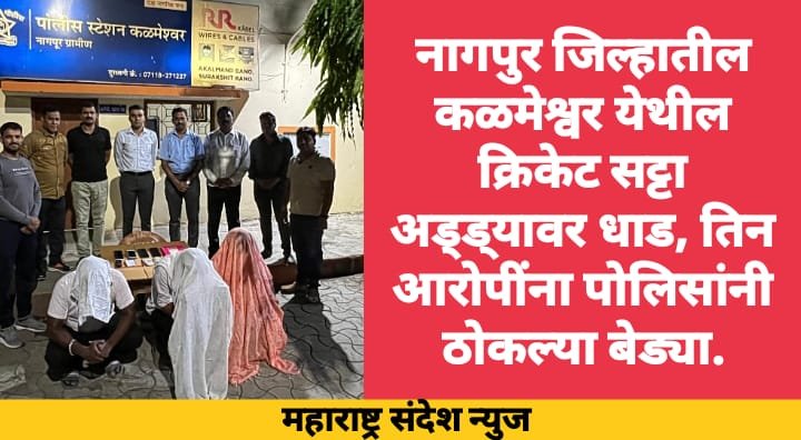 नागपुर जिल्हातील कळमेश्वर येथील क्रिकेट सट्टा अड्ड्यावर धाड, तिन आरोपींना पोलिसांनी ठोकल्या बेड्या.