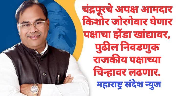 महाराष्ट्र संदेश न्युज ! ऑनलाईन चंद्रपूर:- विधानसभा क्षेत्राचे विद्यमान आमदार किशोर जोरगेवार यांनी एक महत्वपूर्ण माहिती समोर येत आहे. ते आगामी काळात 2024 मध्ये होऊ घेतलेल्या विधानसभा निवडणुकीत कोणत्यातरी पक्षाच्या झेंडा खांद्यावर घेऊन निवडणूक रिंगणात उतरणार आहे. त्यामुळे ते कोणत्या पक्षाचा झेंडा खांद्यावर घेऊन चालणार याची उत्सुकता सर्वांना लागली आहे.