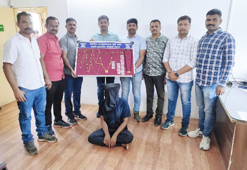 महाराष्ट्र संदेश न्यूज ! ऑनलाईन पुणे :- लोणीकाळभोर पोलीस स्टेशन गुर नं ४१६ / २०२३ भादवि कलम ४५४.३८०, ४२७ मधील फिर्यादी नामे सौ. डॉ. किरण सुहास शिंदे, वय ३७ वर्षे चंदा डॉक्टर रा. फ्लॅट नं १४ विंग सी / १ स्वरगंधा सोसायटी, तिसरा मजला, उरुळीकांचन ता. हवेली, जि. पुणे यांच्या राहते फ्लॅटचा कडी कोयंडा तोडुन आत प्रवेश करुन सोन्याचे दागीणे व रोख रक्कम असा किंमती मुद्देमाल कोणीतरी अज्ञात चोरट्याने घरामध्ये प्रवेश करुन चोरी करून नेला. म्हणुन लोणी काळभोर पोलीस ठाणेस गुन्हा नोंद आहे. सदर आरोपीतांचा शोध घेणेकामी मा. वरीष्ठ पोलीस निरीक्षक सो, दत्तात्रय चव्हाण यांनी पोउपनि गोरे व तपास पथकातील अंमलदारांना आदेशीत केल्याने त्या अनुशंगाने पोउपनिरी गोरे यांनी तपास पथकाचे साहयाने उरुळी कांचन ते हडपसर असे सुमारे २५० सी सी टी व्ही फुटेज चेक करुन, तांत्रीक विश्लेषण व गोपनिय बातमीदाराचे आधारे अज्ञात आरोपीतांचा शोध घेत असता तपास पथकातील पो. हवा. नितीन गायकवाड, पो.ना श्रीनाथ जाधव व पोशि शैलेश कुदळे यांना त्यांचे गुप्त बातमीदारा मार्फत बातमी मिळाली की, “एक दिवसापूर्वी उरुळी कांचन येथील बंद घरातुन चोरी करणारा इसम हा कवडीपाट टोलनाका, पुणे या ठिकाणी असुन त्याने अंगात निळ्या रंगाचा हाफ भायाचा टि शर्ट व काळ्या रंगाची पॅन्ट घातलेली आहे. सदरची माहिती पो. हवा. गायकवाड यांनी आम्हास कळविताच आम्ही ती ताबडतोब वपोनि श्री दत्तात्रय चव्हाण सो यांना कळविली असता त्यांनी सापळा रचुन सदर संशयीत इसमास ताब्यात घेण्याबाबत आदेशीत केल्याने त्या प्रमाणे आम्ही वरील प्रमाणे स्टाफ घेवुन कवडीपाट टोलनाका येथे गेलो असता बातमीदाराने सांगीतले प्रमाणे वरील वर्णनाचा इसम आम्हास कवडीपाट टोलनाका येथे रस्त्याचे कडेला कोणाची तरी वाट पाहत असलेला दिसला आमची चाहुल लागताच तो सदर ठिकाणावरुन पळुन जावु लागल्याने त्याचा पाठलाग करुन थोड्याशा अंतरावर त्यास शिताफीने ताब्यात घेऊन लोणी काळभोर पोलीस स्टेशन, पुणे शहर येथे आणुन त्यास त्याचा नाव पत्ता विचारता त्याने आपले नाव राजकुमार ओकांरआप्पा आपचे वय २८ वर्षे, धंदा मजुरी, मुळ रा. कोथळी, ता. उमरगा, जि. उस्मानाबाद, सध्या रा. होम मेट सोसायटी आपुलकी बार समोर, महादेवनगर, हडपसर, पुणे असे असल्याचे सांगीतले. त्याचेकडे दाखल गुन्हयाचे अनुषंगाने अधिक तपास करता त्याने सदरचा गुन्हा केला असल्याचे निष्पन्न झाल्याने त्यास लोणीकाळभोर पोलीस स्टेशन गु र नं. ४१६ / २०२३ भादवि कलम ४५४, ३८०, ४२७ या गुन्ह्यात अटक करण्यात आल अटके दरम्यान त्याचेकडे केले तपासात त्याने सदर गुन्ह्या व्यतिरीक्त खालील गुन्ह केल्याचे उघडकीस आले असुन सर्व गुन्हयामधील चोरीस गेले एकुण ४,९७,००० रुपयांचे सोन्याचे दागिणे त्या