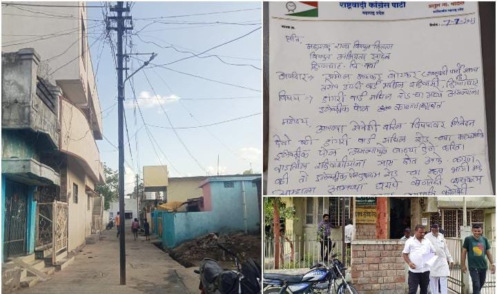 हिंगणघाट शहरातील डांगरी वॉर्ड परिसरात रस्त्याचा मधोमध असलेल्या विद्युत खांब तात्काळ हटविण्याची राष्ट्रवादी काँग्रेस पक्षाची मागणी.