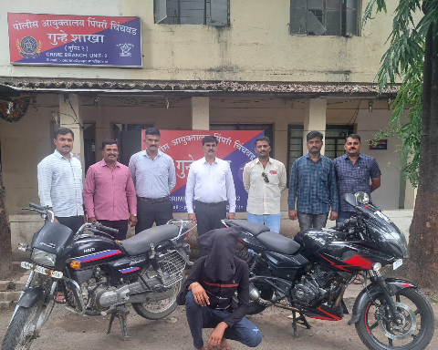 गुन्हे शाखा युनिट २ पिंपरी चिंचवड ची दमदार कामगिरी! वाहनचोरी करणाऱ्या आरोपीला अटक करून केले २ गुन्हे उघड