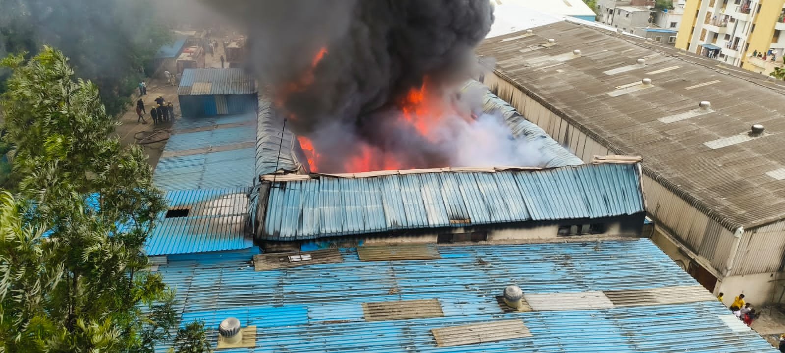 महाराष्ट्र संदेश न्युज ! ऑनलाईन पुणे:- येथून एका कपड्याच्या गोदामाला भीषण आग लागल्याची खळबळजनक घटना समोर आली आहे. या आगीची भीषणता इतकी जास्त होती की दूरपर्यंत धुराचे लोट दिसून येत होते.