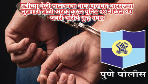 महाराष्ट्र संदेश न्यूज ऑनलाईन पुणे :- मा. पोलीस आयुक्त सो, पुणे शहर यांनी पुणे शहरातील शरीरा विरुद्ध व गालगते विरुद्ध दाखल गुन्ह्यांचा समांतर तपास करून सदरचे गुन्हे उघडकिस आणणे बाबत तसेच फरारी व पाहिजे आरोपी यांचा शोध घेऊन मिळुन आल्यास कायदेशीर कारवाई करणेबाबत आदेश दिलेले आहेत. प्राप्त आदेशाचे अनुषंगाने मा. श्री. गणेश माने, वरिष्ठ पोलीस निरीक्षक, गुन्हे शाखा युनिट ४. पुणे शहर यांनी वरिलप्रमाणे विशेष मोहिम राबवुन कार्यवाही करणेबाबत सुचना व मार्गदर्शन केले. प्राप्त आदेश व सुचनेप्रमाणे पोलीस उप निरीक्षक जयदीप पाटील, सोबत पोलीस हवालदार संजय आदारी, प्रविण ‘भालचिम पोलीस नाईक विनोद महाजन, नागेशसिंग कुँवर, स्वप्निल कांबळे असे पोलीस ठाणे विमानतळ गु. र न. ३२७/२०२३ मा द. वि. कलम ३९२, ३४ व पोलीस ठाणे येरवडा गु. र. नं. ४४३/२०२३ भा. द. वि. कलम ३९२, ३४ या अनोळखी आरोपीतांविरुद्ध दाखल गुन्ह्याचा समांतर तपास करीत होते. तपासा दरम्यान पोलीस नाईक विनोद महाजन व नागेशसिंग कुँवर यांना त्यांचे खास बातमीदारा मार्फत बातमी मिळाली की, “विमाननगर मधिल सिम्बॉयसिस कॉलेज जवळ व कल्याणी नगर, येरवडा येथे रात्रीचे वेळी धारधार शस्त्राचा धाक दाखवुन गुन्हे करणारे आरोपी नामे गौरव ऊर्फ सलमान खान, साहिल ऊर्फ मोबासाई शेख व कैफ शेख हे तिघे पार्किंग नं. ०३ संगमवाडी पुणे येथे बसले आहेत.” अशी खात्रीशीर बातमी प्राप्त झाली. मिळालेली बातमी मा. वरिष्ठांना कळविली असता त्यांनी नमुद ठिकाणी तात्काळ स्टाफ पाठवुन आरोपीतांना कायदेशीर कारवाई कामी ताब्यात पेणेबाबत आदेशीत केले. त्याप्रमाणे पोलीस उप निरीक्षक जयदीप पाटील सोबत सोबत पोलीस हवालदार संजय आढारी, प्रविण भालचिम, पोलीस नाईक विनोद महाजन, नागेशसिंग कुँवर, स्वप्निल कांबळे यांनी बातमीच्या ठिकाणी तात्काळ जावून आरोपी नामे १) साहिल ऊर्फ मोबासाई समीर शेख वय २१ रा. यशवंत नगर मच्छि मार्केट मागे, शेलार चाळ येरवडा पुणे व एक बाल अपचारी यांना शिताफीने ताब्यात घेतले ताब्यातील आरोपी व बालअपचारी यांच्याकडे सखोल तपास करून त्यांनी त्यांचे साथीदार (फरार) नामे कैफ शेख विजय ऊर्फ डुड राठोड यांच्या मदतीने केलेले १) पोलीस ठाणे विमानतळ गु. र. नं. ३२७/२०२३ भा. द. वि. कलम ३९२, ३४ व २) पोलीस ठाणे गेरवडा गु. र. न. ४४३ / २०२३ भादवि कलम ३९२, ३४ हे दोन गुन्हे उघडकीस आणण्यात आले आहेत. तसेच आरोपीतांनी गुन्हा करण्याकरीता वापरलेली पालघन व १०,०००/- रु किमतीचा चोरीस गेलेला मोबाईल फोन हस्तगत केला आहे..
