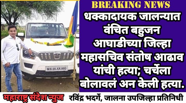 महाराष्ट्र संदेश न्युज ! ऑनलाईन जालना:- जिल्हातून एका खळबळजनक घटना समोर आली आहे. येथील रामनगर येथे 15 जुलै, 2023 रोजी रात्री वंचित बहुजन आघाडीच्या जालना जिल्हा महासचिवांची हत्या करण्यात आल्याची घटना समोर आली आहे. संतोष आढाव असे हत्या करण्यात आलेल्या व्यक्तीचे नाव आहे. जमिनीच्या वादातून ही हत्या करण्यात आल्याची माहिती मिळाली आहे.