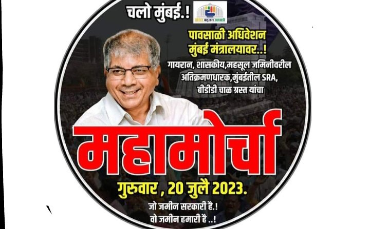 महाराष्ट्र संदेश न्युज ! ऑनलाईन जालना:- वंचीत बहुजन आघाडीचे राष्ट्रीय अध्यक्ष ऍड. बाळासाहेब आंबेडकर यांच्या नेतृत्वात पावसाळी अधिवेशनाच्या धर्तीवर दि.२० जुलै २०२३ रोजी मुंबई मंत्रालयावर गायरान धारकांचा भव्य राज्य व्यापी महामोर्चाचे आयोजन करण्यात आले आहे.