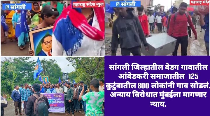 सांगली जिल्ह्यातील मिरज तालुक्यातील बेडगमध्ये आंबडेकरी समाज गाव सोडून मुंबईकडे रवाना झाला आहे. सुमारे दीडशेहून अधिक कुटुंब लॉन्ग मार्च करत पायी मुंबईच्या दिशेने निघाले आहेत. एक महिन्यांपूर्वी गावात उभारण्यात येत असलेली डॉ. बाबासाहेब आंबेडकरांच्या स्वागत कमानीचे खांब ग्रामपंचायतकडून पाडण्यात आले. त्यानंतर गावामध्ये ग्रामपंचायत विरुद्ध आंबेडकरी समाज असा विरोध सुरु झाला होता. मात्र, प्रशासना कडून कमानीचे खांब पाडणाऱ्यांना पाठिशी घालण्यात येत असल्याचा आरोप करण्यात आला होता. त्यामुळे न्याय मिळत नाही या भावनेतून बेडगमधील आंबडेकरी समाजातील नागरिकांनी थेट गाव सोडण्याचा निर्धार केला होता. त्यानुसार आता आंबडेकरी समाजाने गाव सोडण्याचा निर्धार करत गाव सोडले आहे. कमानीचे खांब पाडणाऱ्यांवर कारवाई न करण्यात आल्याने गावातील आंबेडकरी समाजातील जवळपास 125 कुटुंबातील 800 लोकांनी गाव सोडलं आहे.