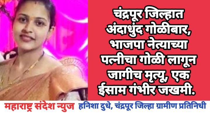 चंद्रपूर जिल्हात अंदाधुंद गोळीबार, भाजपा नेत्याच्या पत्नीचा गोळी लागून जागीच मृत्यू, एक ईसाम गंभीर जखमी.