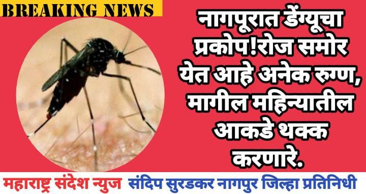 महाराष्ट्र संदेश न्यूज! ऑनलाईन नागपूर:- राज्याच्या उपराजधानी असलेल्या नागपुरात डेंग्यू ने कहर केला आहे. महिन्याभरातील आकडे थक्क करणारे आहे. त्यामुळे डेंग्यूने चांगलेच पाय पसरवले असल्याचे दिसून येत आहे.