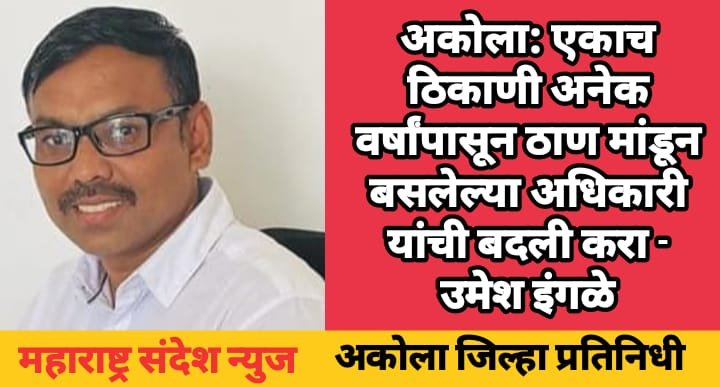 अकोला: एकाच ठिकाणी अनेक वर्षांपासून ठाण मांडून बसलेल्या अधिकारी यांची बदली करा – उमेश इंगळे