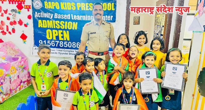 महाराष्ट्र संदेश न्युज ! ऑनलाईन पुणे:- शहरतील आरएपीओ किड्स प्रीस्कूलच्या विद्यार्थ्यांनी उल्लेखनीय कामगीरी करून पुणे सह संपूर्ण राष्ट्राचे नावलोकिक केले. खराडी पुणे येथील विद्यार्थ्यांनी नवीन “भारतीय जागतिक विक्रम” स्थापित करून उल्लेखनीय कामगिरीसाठी प्रतिष्ठित इंडियन बुक ऑफ रेकॉर्डमध्ये आपले नाव कोरले. यात हुशार विद्यार्थी युग समीर पासलकर, रिद्धी चेतन कांबळे, देवांश धर्माराम बंजारा, समायरा राहुल पवार, मोहम्मद ओवैश, अनिल मुंडे, स्वरा सचिन जाधव, आराध्या अनिल मांडेकर, फलक गुप्ता अशी या उपक्रमात सहभागी झालेल्या मुलांची नावे आहेत.
