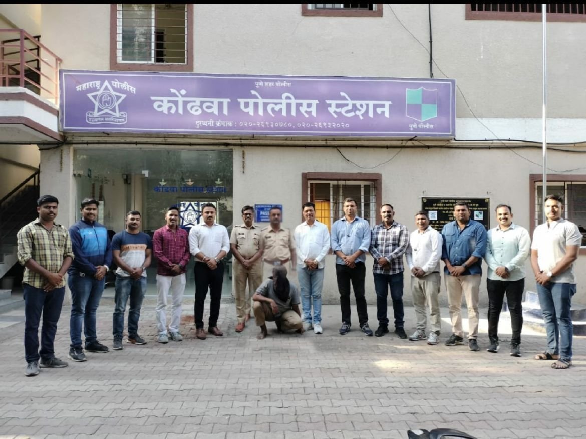 वरील नमुद कारवाई ही मा.पोलीस उप-आयुक्त परिमंडळ-5 श्री विक्रांत देशमुख, मा. सहा. पोलीस आयुक्त वानवडी विभाग श्री शाहुराज साळवे, मा. वरिष्ठ पोलीस निरीक्षक सो, श्री संतोष सोनवणे यांच्या मार्गदर्शनाखाली कोंढवा पोलीस स्टेशन येथील तपास पथकाचे पोलीस उपनिरीक्षक स्वप्नील पाटील, पोहवा / १९६१ सतिश चव्हाण, पोहवा ७९ निलेश देसाई, पोना / ८४८६ गोरखनाथ चिनके, पोना/ ७७८२ जोतिबा पवार, पो. अं. / २५८५ सुजित मदन, पो. / ९८३८ संतोष बनसुडे पो. अं./ ८५९५ लक्ष्मण होळकर, पो. अं. १०११६ सागर भोसले व पो. अं/ ४९० सुरज शुक्ला, पो.अ बनकर यांच्या पथकाने केली आहे.