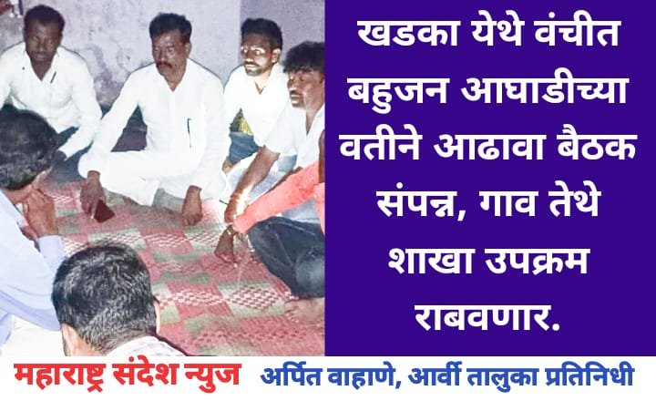 महाराष्ट्र संदेश न्युज ! ऑनलाईन आर्वी:- दिनांक 5 ऑगस्ट रोजी खडका येथे वंचीत बहुजन आघाडीच्या वतीने आढावा बैठक आयोजित करण्यात आली होती. वंचीत बहुजन आघाडी च्या वतीने गावा तिथे शाखा उपक्रम राबविले जात आहे. त्यामुळे प्रत्येक गावात शाखा उद्घाटन सुरू करण्यात आले आहे.