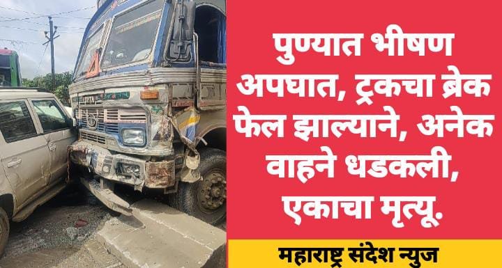 महाराष्ट्र संदेश न्युज ! ऑनलाईन पुणे:- शहरातील कोंढवा पोलीस ठाण्याची हद्दीमध्ये स्मशानभूमी समोर खडीमशीन पोलीस चौकी जवळ एक मालवाहतूक करणाऱ्या ट्रक चा ब्रेक फेल झाल्याने भीषण अपघाताची घटना समोर आली आहे. या भीषण अपघातात एकाचा जागीच मृत्यू झाला आहे. त्यात एक शालेय विद्यार्थ्यांना घेऊन जाणारी बस थोडक्यात वाचली नाहीत तर अपघाताची तीव्रता वाढली वाढली असती.