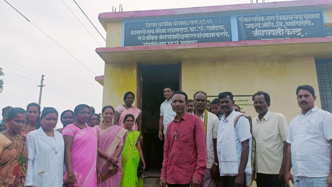 महाराष्ट्र संदेश न्युज ! ऑनलाईन अहेरी:- तालुक्यातील ग्राम पंचायत खांदला अंतर्गत रायगट्टा येथे जीर्ण झालेली अंगणवाडी होती. यामुळे लहान मुलांना अंगणवाडी मध्ये बसवून शिक्षण देणे हे धोक्याचे झाले होतेम म्हणून तेथील गावकऱ्यांनी सन 2021-2022 मध्ये भारत राष्ट्र समितीचे नेते, आविस विभागीय अध्यक्ष तथा माजी आमदार दिपकदादा आत्राम यांच्याकडे नवीन अंगणवाडी इमारत बांधकामाची मागणी केले असता माजी आमदार दिपकदादा आत्राम यांनी मागणीचे गांभीर्य लक्षात घेऊन जिल्हा परिषद येथे पाठपुरावा करून नवीन अंगणवाडी मंजूर केले होते. आज त्या अंगणवाडीचे बांधकाम पूर्ण झाले असून माजी सरपंचा सौ शकुंतला माधव कुडमेथे यांच्या हस्ते लोकार्पण करून गावातील चिमुकल्यांना नवीन वास्तू उपलब्ध करून देण्यात आले.