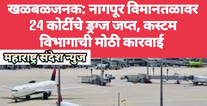 महाराष्ट्र संदेश न्युज ! ऑनलाईन नागपूर:- येथील डॉ. बाबासाहेब आंबेडकर आंतरराष्ट्रीय विमानतळावरून एक खळबळजनक माहिती समोर आली आहे. येथे कस्टम विभागाने कारवाई केली आहे. तब्बल 24 कोटी किंमतीचे ड्रग्ज जप्त करण्यात आले आहे. त्यामुळे नागपुर येथे ड्रग्जच्या जाळात तरुण तरुणीला फसवल्या जात आहे.