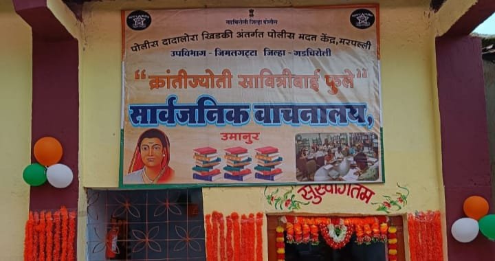 गडचिरोली जिमलगठ्ठा उपविभागीय अंतर्गत येत असलेल्या मरपल्ली पोलीस स्टेशन हद्दीतील उमानूर येथे दिनांक 28 ऑगस्ट रोजी पोमके मरपल्ली येथे पोलीस अधीक्षक नीलोत्पल, अप्पर पोलीस अधीक्षक अनुज तारे, अप्पर पोलीस अधीक्षक कुमार चिंता, अपर पोलीस अधीक्षक यतीन देशमुख सो. यांच्या संकल्पनेतून तसेच सुजीतकुमार क्षीरसागर उपविभागीय पोलीस अधिकारी जिमलगट्टा यांच्या मार्गदर्शनाखाली पोलीस दादालोरा खिडकी अंतर्गत एक गांव एक वाचनालय संकल्पने अंतर्गत ग्राम उमानुर येथे क्रांतिज्योती सावित्रीबाई फुले सार्वजनिक वाचनालय लोकार्पण सोहळा तसेच कृषी मेळाव्याचे आयोजन करण्यात आले.