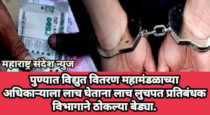 महाराष्ट्र संदेश न्युज ! ऑनलाईन पुणे:- पुण्यात विद्युत वितरण महामंडळाच्या एक लाचखोर अधिकाऱ्याला लाच लुचपत प्रतिबंधक विभागाने रंगेहाथ लाच घेताना बेड्या ठोकल्या आहे. ही घटना समोर येताच संपूर्ण विद्युत वितरण महामंडळ विभागात एकच खळबळ माजली आहे.