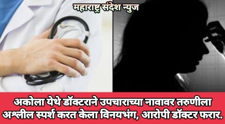 महाराष्ट्र संदेश न्युज ! ऑनलाईन अकोला 2 सप्टेंबर:- अकोल्यातून एक खळबळजनक घटना समोर आली आहे. येथे उपचारासाठी डॉक्टर कडे गेलेल्या तरुणीला डॉक्टरने अश्लील स्पर्श करत तिचा विनयभंग केल्याची घटना उघडकीस आली आहे. ही घटना समोर येताच संपूर्ण शहरात एकच खळबळ माजली आहे.