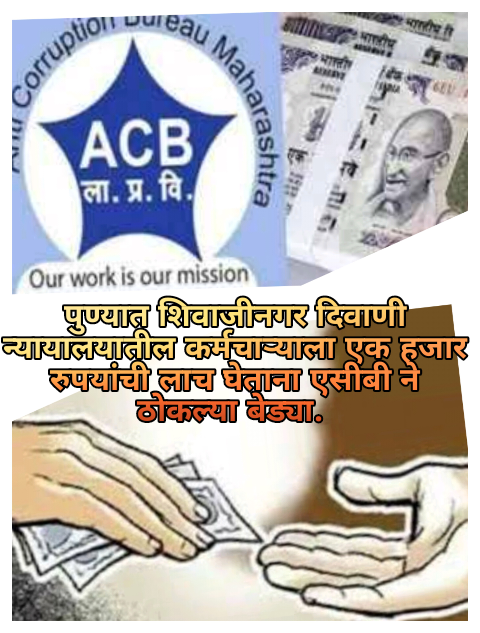 महाराष्ट्र संदेश न्युज ! ऑनलाईन पुणे:- पुण्यात लाचखोरीच्या घटनेत उधाण आले आहे. अशीच एक घटना शिवाजीनगर दिवाणी न्यायालयातून समोर आली आहे. शिवाजीनगर दिवाणी न्यायालयातील एका कर्मचाऱ्याला 1 हजार रुपयांची लाच घेताना लाचलुचपत प्रतिबंधक विभागाने शुक्रवारी (दि.1) रंगेहाथ अटक केली आहे. लक्ष्मण नथू काळे वय 40 वर्ष असे लाचखोर कर्मचाऱ्याचे नाव आहे.