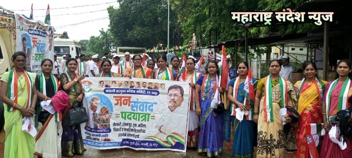 केंद्र व राज्य सरकारच्या दडपशाही धोरणा विरुद्ध शेकडो काँग्रेस कार्यकर्त्याचे जनसंवाद पदयात्रेत निषेध व घोषणाबाजी.