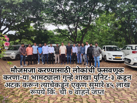 नमुद गुन्हयाचा तपास राहुल पवार पोलीस उप-निरीक्षक, गुन्हे शाखा युनिट ३. पुणे शहर हे करत असताना आरोपी नामे सयाजी ज्ञानदेव पाटील, रा. फ्लॅट नंबर १०१ तातोबा कॉम्प्लेक्स, मानाजी नगर, नऱ्हे, पुणे मळ गाव अमनापुर, ता. पलुस, जि. सांगली यास. ( पोलीस शिपाई ज्ञानेश्वर चित्ते ) यांना मिळालेल्या बातमीवरून पकडून त्यास अटक करून त्याचेकडे तपास करता त्याने खालील इसमांची तक्रारदार यांचेप्रमाणे फसवुणक केल्याचे तपासात निष्पन्न झाले आहे. १) रामेश्वर दामोदर शेळके रा. यशोदिप चौक, वारजेमाळवाडी, पुणे यांची किं. रु.७,००,०००/- मारुती सुझुकी कंपनीची डिझायर कार नंबर एम.एच.१२ / के. एन. ८५४५ २) रविंद्र जनार्धन जाधव रा. प्रियंका डेव्हलपर्सफ्लॅट नंबर ३०३, पौर्णिमा हाईटसजवळ, न-हे, पुणे यांची किं. रू. ४,००,०००/- ची फोर्ट कंपनीची फियस्टा नंबर एम. एच. १२/डि.एस./५२२० ३) शशीकांत अमृत बरगे रा. मु. पांढरवाडी, पो. डिकसळ ता. खटाव जि. सातारा यांची किं. रू.१,००,०००/- मारुती सुझुकी कंपनीची इर्टिका कार नंबर एम.एच. ११/डि.ओ./०६८४ ४) बाबु शंकर राठोड वय ४५ वर्षे रा. गणेश नगर, बोपखेल, पुणे यांची किं. रु.६,००,०००/- ची• सुझुकी कंपनीची इर्टिका कार नंबर एम.एच.१४/ के.एफ. ०४३०५) विभुते याची किं. रू ७,००,०००/- ची मारूती सुझुकी कंपनीची स्विफ्ट कार नंबरएम.एच.४५/ ओ.सी.७९८७६) गणेश सोपान धोत्रे रा. स. नं. ३२/१८ धायरीगाव, पुणे यांची किं. रु.५,००,०००/- मारुती सुझुकी कंपनीची वॅगनआर कार नंबर एम. एच. १२ / आर.टि. ४२०८ ७) तसेच दाखल गुन्हयातील तक्रारदार यांची किं. रू. ५,५०,०००/- ची मारूती सुझुकी कंपनीची इर्टिका कार नंबर एम.एच.१२/ एन.पी./ १६३७ करण्यात आलेल्या आहेत.अशा एकुण ७ चार चाकी वाहने किं. रू. ४३,५०,०००/- च्या नमुद आरोपीकडून जप्त आरोपीकडे केले तपासात त्याने सदरचा गुन्हा हा स्वतः मौजमजा करण्याकरीता केला असल्याचे तपासात सांगीतले आहे.