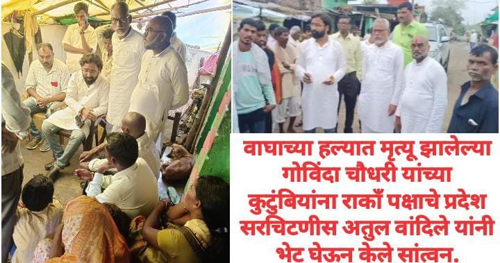 महाराष्ट्र संदेश न्युज ! ऑनलाईन समुद्रपूर:- तालुक्यातील ताडगाव येथील शेतकरी गोविंदा लहाणू चौधरी नेहमीप्रमाणे शेतात गेले असता अचानक झुडुपात लपलेल्या वाघिणीने हल्ला चढविला असता या हल्ल्यात त्यांचा जागीच मृत्यु झाला. ही दुःखद बातमी मिळताच प्रदेश सरचिटणीस अतुल वांदिले यांनी शेतकऱ्यांचा कुंटुबियांची भेट घेऊन सांत्वन केले. यावेळी मृतकांचा मुलगा यांनी घडलेल्या प्रसंगाचा सर्व थरार यावेळी सांगितला.