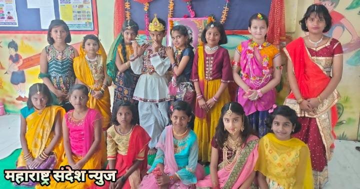 महाराष्ट्र संदेश न्युज ! ऑनलाईन परतूर :- तालुक्यातील श्रीकृष्ण जन्माष्टमीनिमित्ताने छत्रपती शिवाजी इंटरनॅशनल ड्रीम स्कूल मधील मुलांनी राधा-कृष्णाची वेशभूषा करून त्यांनी ‘गोविंद बोलो, हरी गोपाल बोलो…’ गाण्यावर ठेका धरला. बालगोपालांनी मनोरे रचून जल्लोषात दहीहंडी फोडून प्रसादाचे वाटप केले.गोप- गोपिकांच्या वेशभूषेत विद्यार्थी खूप सुंदर दिसत होते.बालगोपालांनी विविध सांस्कृतिक कार्यक्रम सादर केले.