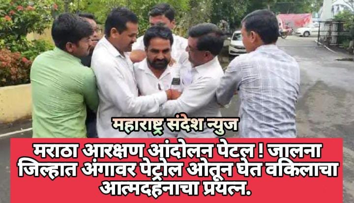 अंबड तालुक्यातील अंतरवाली सराटी येथे मराठा समाजाला आरक्षण मिळावे, या मागणीसाठी मनोज जरांगे हे गेल्या अकरा दिवसांपासून उपोषण करीत आहे. मात्र अद्याप प्रशासनाच्या वतीने कुठलाही निर्णय झालेला नाही. सरकारने त्यांच्या मागण्या मान्य कराव्यात. शिवाय, लाठीचार्ज करणाऱ्या पोलिसांवर गुन्हे दाखल करावे, अशी मागणी करत संतप्त मारोती भाऊसाहेब वाडेकर यांनी अखेर टोकाचे पाऊल उचलत अंगावर डिझेल ओतून घेत आत्मदहनाचा प्रयत्न केला. यावेळी पोलिसांनी वेळीच हस्तक्षेप करून त्यांना आवरल्याने मोठा अनर्थ टळला. या प्रकरणी गुन्हा दाखल करण्याची प्रक्रिया सुरू होती. यावेळी पोलिसांची उपस्थिती होती.