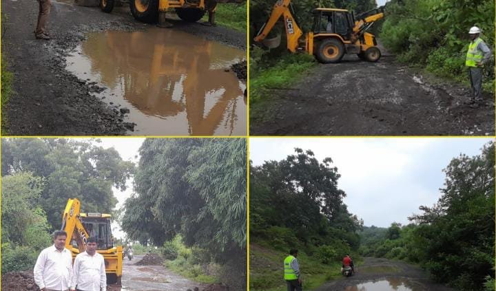 महाराष्ट्र संदेश न्युज ! ऑनलाईन राजुरा, दि. ७ सप्टेंबर:- तालुक्यातील नोकारी खुर्द हे गाव जिवती व कोरपणा कडे जाणाऱ्या मार्गांवर बसलेलं गाव आहे. या मार्गावरील नोकारी बु., बाम्बेझरी, लिंगनडोह व आसापूर हे गाव वसलेले आहे. या मार्गाची अत्यंत दुरावस्था होऊन मोठे खड्डे पडलेले होते. तसेच रस्त्याच्या कडेला जंगली झुडपांची मोठी वाढ झाली होती. यामुळं जनतेला होणारा त्रास लक्षात घेऊन नोकारी खु. चे उपसरपंच तुराणकर यांनी पुढाकार घेत लोकसहभागातून या मार्गाची दुरुस्ती करून जनतेचा प्रवास सोईचा करून दिला आहे.