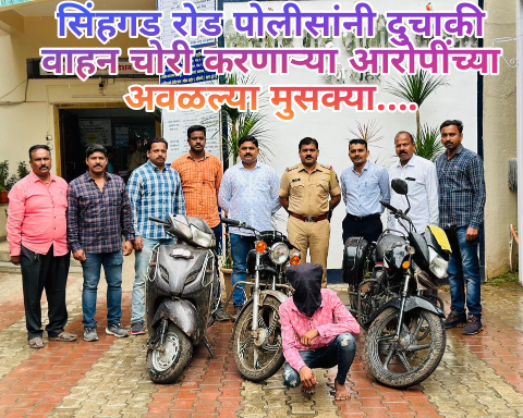महाराष्ट्र संदेश न्यूज ! ऑनलाईन पुणे :- सदर बाबत अधिक माहिती अशी की, सिंहगडरोड पोलीस स्टेशन हादीत मा. वरिष्ठ पोलीस निरीक्षक सिहगडरोड पो स्टे पुणे व मा. पोलीस निरीक्षक (गुन्हे), सिहगडरोड पोलीस स्टेशन पुणे शहर याचे आदेशाने सहा पोलीस निरीक्षक निकम, पोलीस उप निरीक्षक गणेश मोकाशी, सहा पोलीस फौजदार उत्तेकर, पोलीस अंमलदार ९१८३ ओलेकर, पोलीस अंमलदार/९१९१ क्षिरसागर, असे वाहनचोरी, घरफोडी, अवैध धंदे यांना प्रतिबंध होणे कामी आम्ही खाजगी वाहनावर पेट्रोलिंग ड्यूटी करीत असताना फिरत कॅनोल रोड तुकाईनगर येथे आलो असता एक समोरून यमाहा गाडी येताना दिसली ती आमचे जवळ येताच तिस पुढील बाजुस नंबर नसल्याचे दिसुन आल्याने सदर गाडीबाबत संशय आला त्यामुळे आम्ही सदरची दुचाकी गाडी वरील स्टॉफचे मदतीने १५/३० वा. थांबविली असता गाडीचे भागील बाजुस सुध्दा नंबर प्लेट नसल्याचे दिसुन आले त्यामुळे आम्हांस अधिक संशय आल्याने दुचाकी गाडीवरील चालकास त्याचे लायसन्स व गाडीचे कागदपत्रात बाबत चौकशी केली तो उडवाउडवीचे उत्तरे देत असल्याने त्याबाबत आमची खात्री झाल्याने त्यास त्याचे नावपत्ता विचारता त्याने त्याचे नाव ओंकार ऊर्फ बुटया संतोष सातपुते वय १९ वर्षे रा. साईधाम अभिनव कॉलेजरोड, श्री कंट्रोल चौक, न-हे पुणे. असे आल्याचे सांगितले. त्याचे ताब्यातील दुचाकी गाडी बाबत त्याचे कडे जागीच सखोल तपास करता त्याने ताब्यातील गाडी एका बिल्डींगचे पार्कंग जागेतुन चोरी केल्याचे सांगितले असता सदर बाबत सिंहगडरोड पोलीस स्टेशन कडील अभिलेख पाहता सदरची गाडी चोरी बाबत सिंहगडरोड पोलीस स्टेशन गुन्हा रजि नं ४१०/२०२३ मा द वि कलम ३७९ अन्वये दाखल असल्याची माहीती प्राप्त झाल्याने त्यास दाखल गुन्ह्यात दि.०१/०९/२०२३ रोजी १७/०० वा अटक करुन त्यास विश्वासात घेवुन त्याच्याकडे अधिक तपास करता त्यांने सिंहगडरोड पोलीस स्टेशन परीसरातून आणखी दोन दुचाकी गाड्या चोरी केले असल्याचे तपासात निष्पन्न झाल्याने त्याच्याकडुन सिंहगडरोड पोलीस स्टेशन कडील तिन दुचाकी वाहन चोरीच्या गुन्ह्याची उकल करण्यात आली आहे.