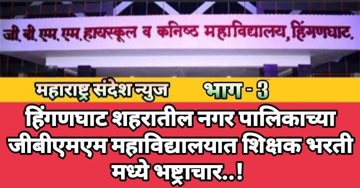 महाराष्ट्र संदेश न्युज ! ऑनलाईन हिंगणघाट:- शहरातील नगर पालिका प्रशासना मार्फत चालवण्यात येणाऱ्या जीबीएमएम ज्युनिअर कॉलेज प्रशासनाचा शिक्षण विभागात गैरकारभाराचे दिवसेंदिवस नवनवीन प्रताप समोर येत आहे. त्या अनुषंगाने गतकाळात नियमांना फाटा देत जनतेचे पैशाची सर्हास लूट माजवली आहे. त्यामुळे नगर पालिका प्रशासन आणि शाळा प्रशासन यांच्यावर मोठे प्रश्न चिन्ह निर्माण झाले आहे.