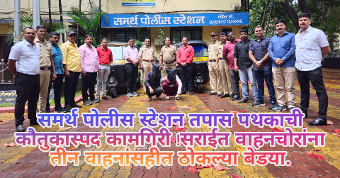 समर्थ पोलीस स्टेशन तपास पथकाची कौतुकास्पद कामगिरी !सराईत वाहनचोरांना तीन वाहनांसहीत ठोकल्या बेडया.